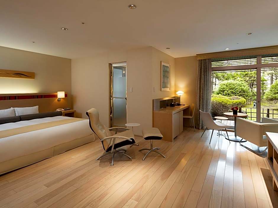 This spacious room is air-conditioned and equipped with a Simmons bed, a TV and a refrigerator. A work desk, slippers and toiletries are provided.