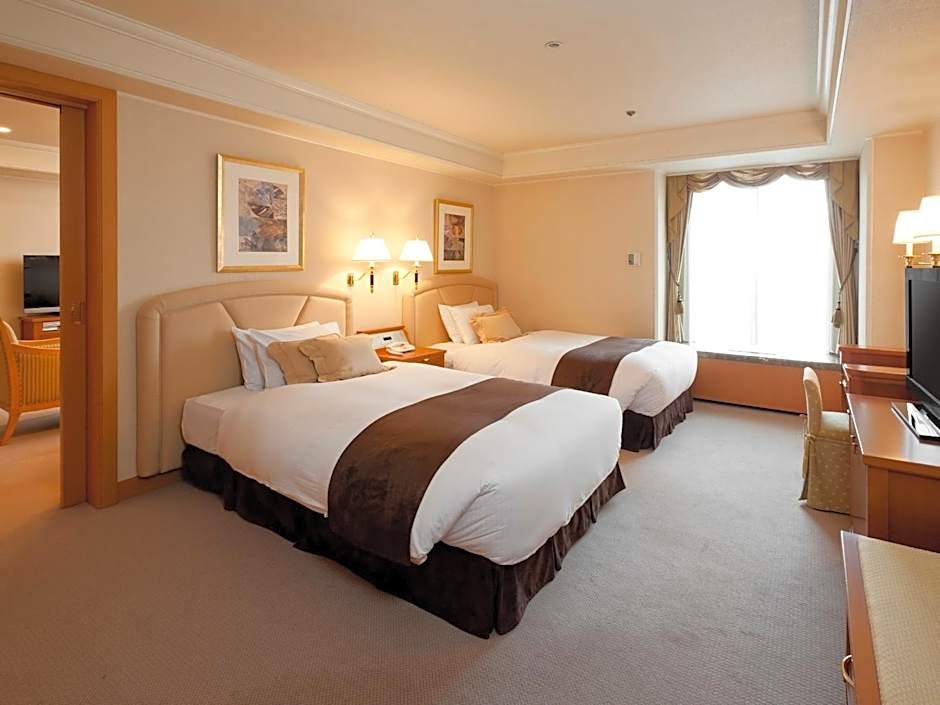 This room features Western-style beds and a tatami (woven-straw) seating area. Room is air-conditioned and equipped with a TV and a refrigerator. A work desk, slippers and toiletries are provided.